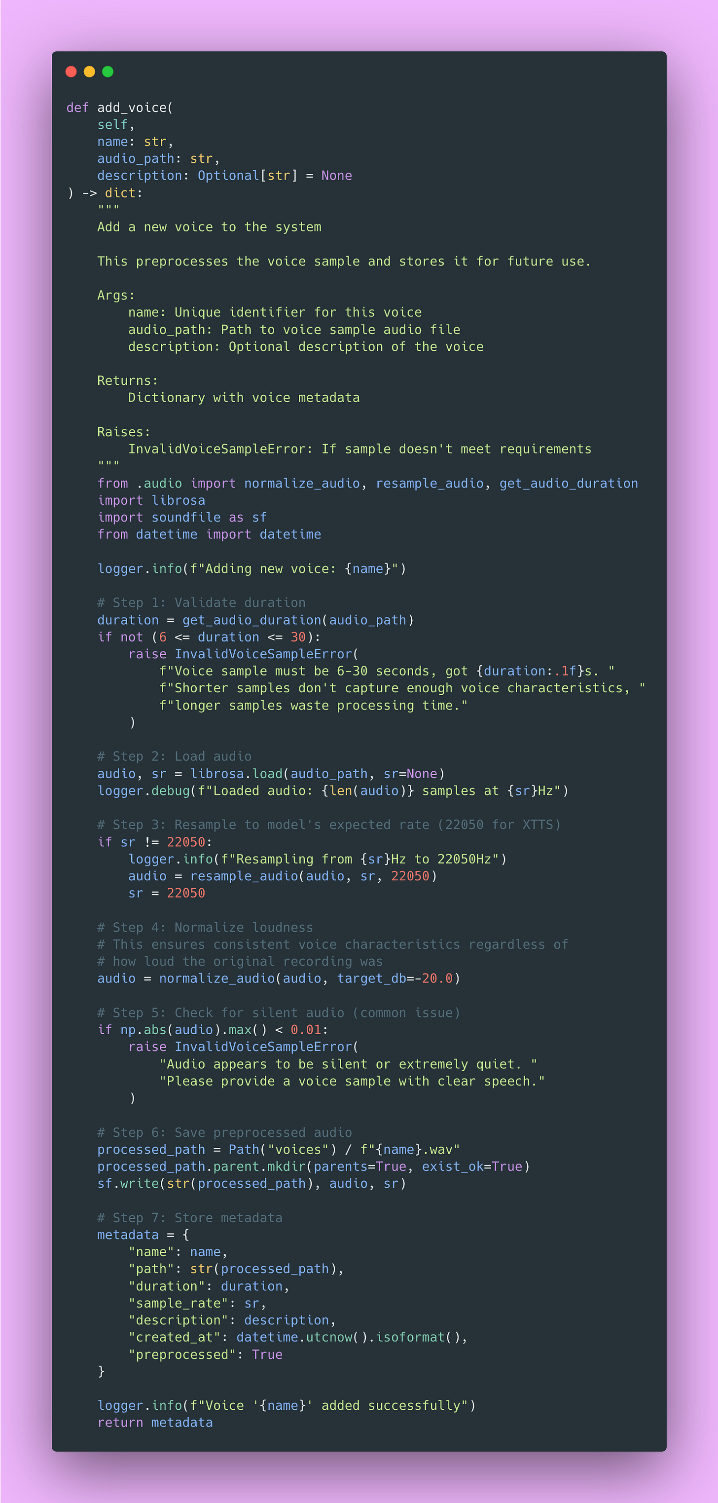 Trust me, you don’t want your API accidentally generating chipmunk voices because someone uploaded 44.1kHz audio and you didn’t resample 🐿️.