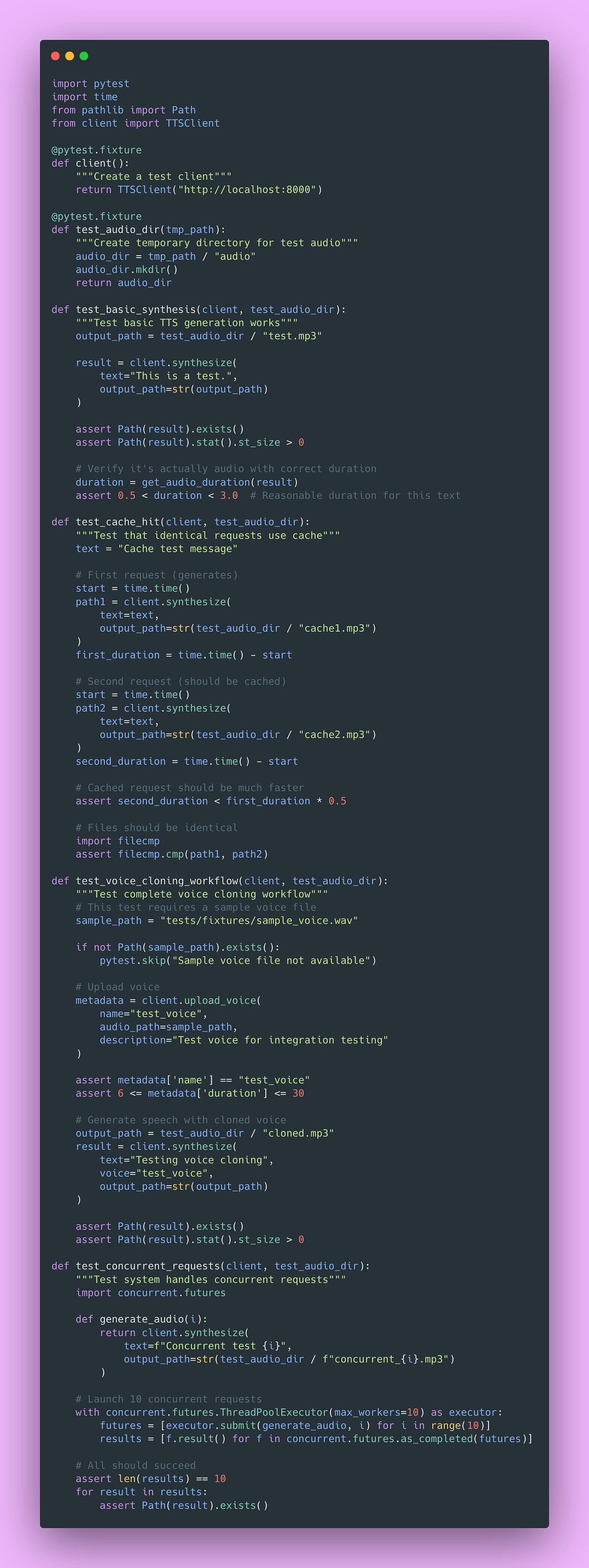 Testing audio systems is different from testing text APIs. String comparison doesn’t work when you’re dealing with binary audio files. You need to verify formats, check durations, validate file sizes, and sometimes manually listen to outputs. Here’s how I structure tests.